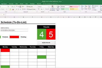 Automatic Task Count Update: Define color codes for Finished and Pending tasks in cells B10 and D10, respectively. As you color-code your tasks in the table, the built-in macro on pressing the ‘Update Results’ button dynamically calculates the number of tasks finished and pending.